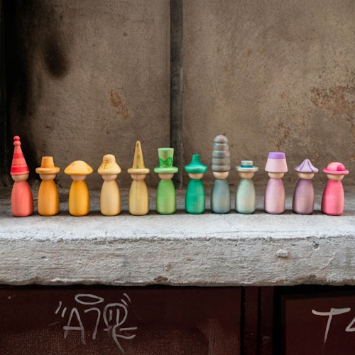 Nins® sind die einzigartigen und handgefertigten Spielfiguren aus Holz vom spanischen Hersteller Grapat. Sie zeichnen sich durch ihre schlichte und minimalistische Gestaltung aus. Trotz ihres minimalistischen Designs eröffnen sie eine Welt voller Möglichkeiten. So haben die Figuren beispielsweise keine Gesichter und auch kein zugeschriebenes Geschlecht.