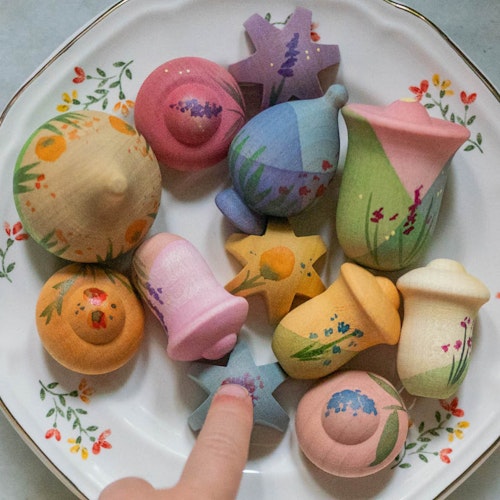 So heißt das Set zwar „Flower Meadow“, doch die kleinen Holzfiguren können alles sein, was die Kinder wollen. Sie werden zu Requisiten in persönlichen, ausgedachten Geschichten, die nur den Kleinsten gehören. Als Eltern können Sie nur dabei helfen, diesen Raum zu schaffen. Sie sollten nicht anleiten. Denn die Sets fördern selbstständiges, kreatives Spiel, das in Kitas und zu Hause für lange Beschäftigung und tiefere Lernmomente sorgt.