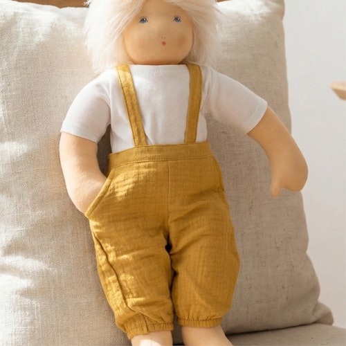Puppen Latzhose m. Shirt 35-45cm honiggelb, Bio-Baumwolle