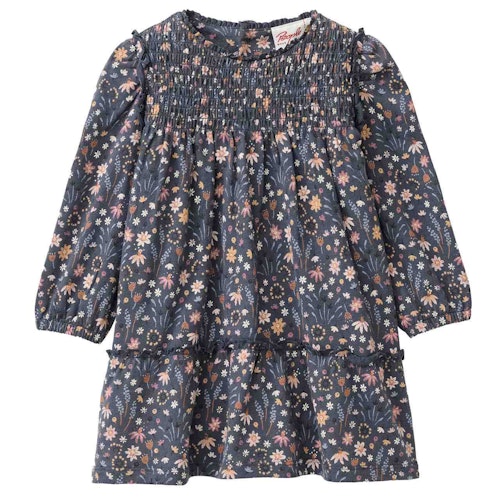 Jersey Langarmkleid blau mit Blumen
