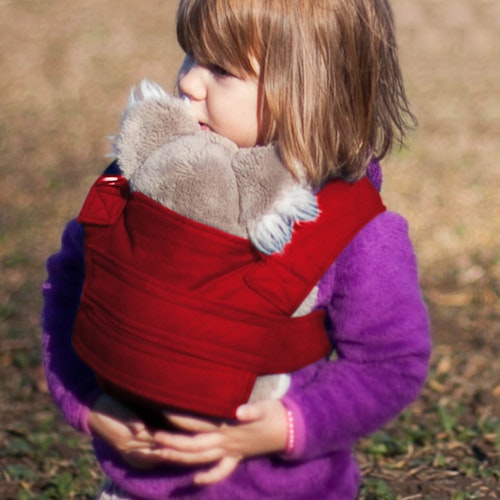 Weniger Eifersucht bei großen Geschwistern: wenn ein neues Baby in der Familie immer nah am Körper von Mama und Papa getragen wird, nagt an den großen Geschwistern oft die Eifersucht. Können sie aber selbst ihre Puppe oder Teddy tragen, sind sie mehr einbezogen und fühlen sie sich nicht mehr so „ausgegrenzt“. Die Eifersucht lässt nach oder entsteht erst gar nicht.
