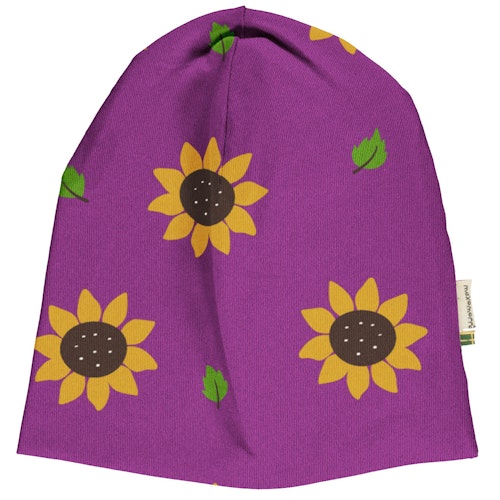 Mütze mit Alloverprint Sonnenblumen in lila