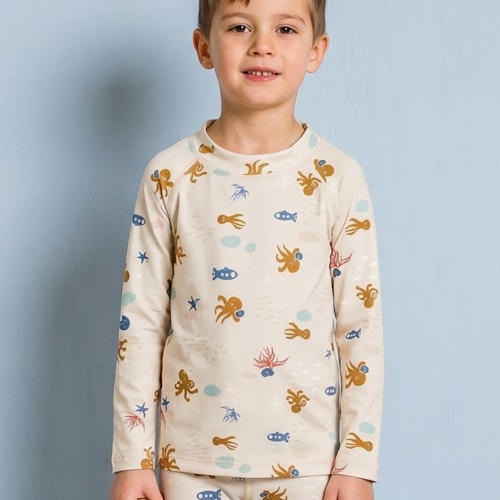 UV Schwimmshirt langarm Meerestiere beige