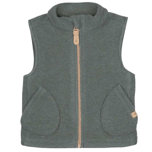 Robuste Walk-Weste für Jungen und Mädchen aus hochwertiger Wolle-Baumwolle-Qualität von pure pure by Bauer Bio Kindermode. Die Kinder Weste besteht außen aus 80% Wolle, kbT, und 20% Baumwolle, kbA, und ist innen mit 97% Baumwolle, kbA, und 3% Elasthan gefüttert. Durch diesen Materialmix hält die Weste warm, ist atmungsaktiv und fühlt sich angenehm weich an.