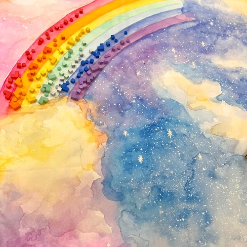 Ein Himmel voller Zauber: Sanft fließende Regenbogenfarben, schwebende Wolken und funkelnde Sterne verwandeln dieses handillustrierte Tuch in eine Traumlandschaft. Über dem Bett aufgehängt wird es zum beruhigenden Blickfang und lädt zum Träumen ein - wie ein kleines Himmelszelt im Kinderzimmer. Und am Tag wird daraus eine Bühne für Fantasieabenteuer.
